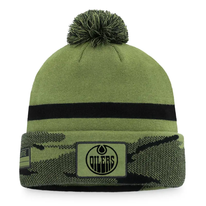 Men’s Fanatics Camo Edmonton Oilers Military Appreciation Cuffed Knit Hat with Pom