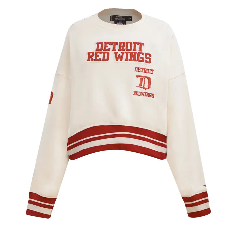 NHL DETROIT RED WINGS RETRO CLASSIC WOMEN’S RIB CROPPED PULLOVER HOODIE (EGGSHELL\/ RED)