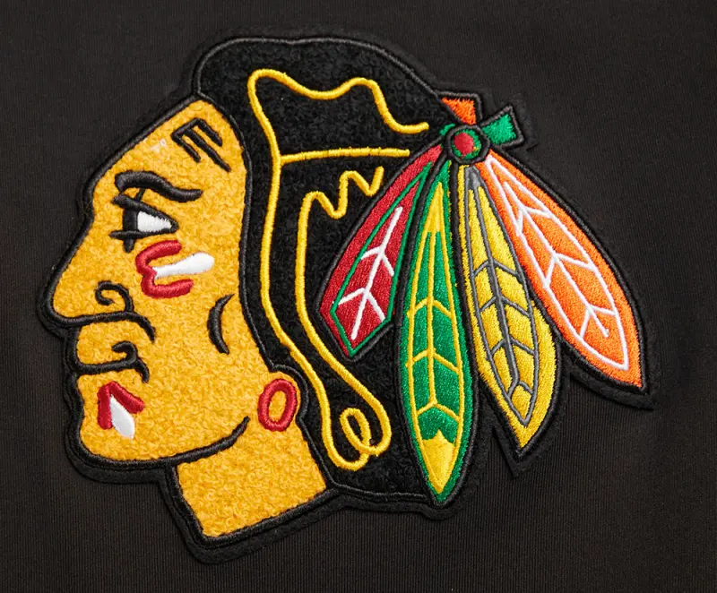 NHL CHICAGO BLACKHAWKS CLASSIC CHENILLE MEN’S TRACK JACKET (BLACK\/RED)