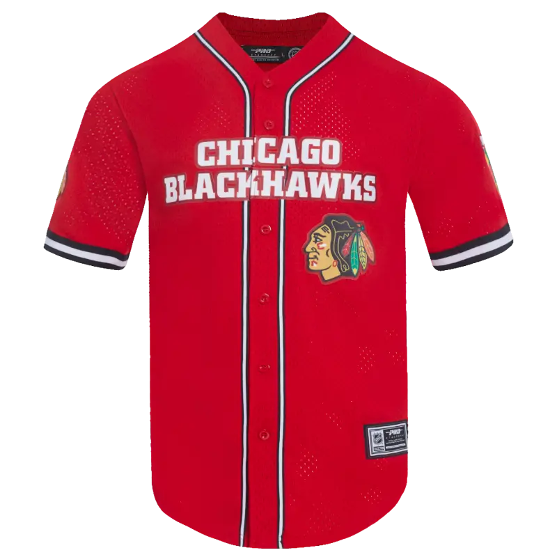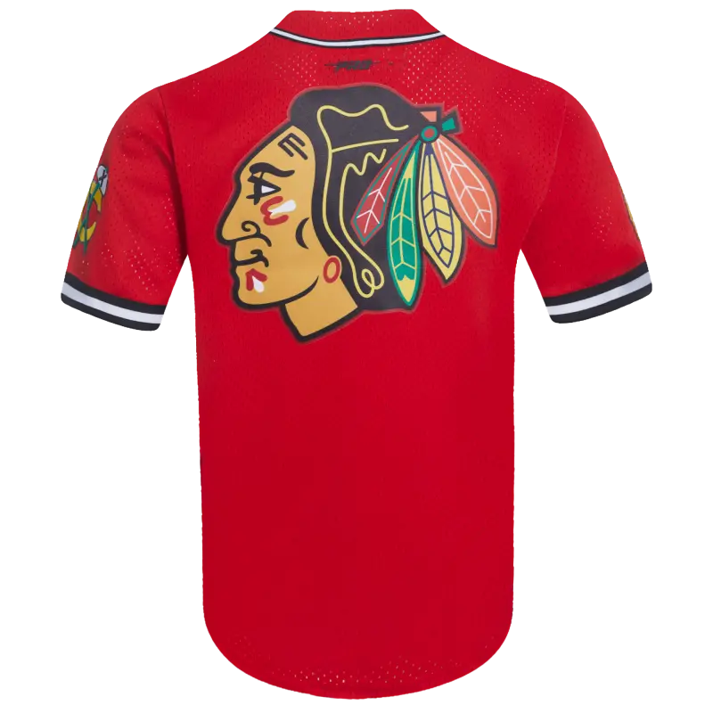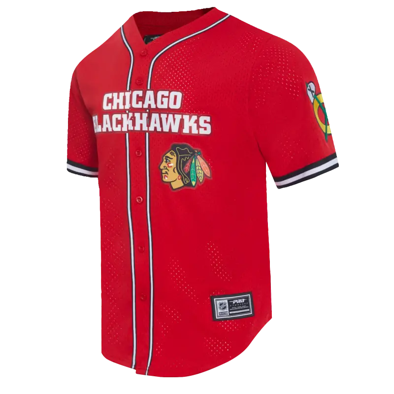 NHL CHICAGO BLACKHAWKS CLASSIC MEN’S MESH BUTTON DOWN SHIRT (RED\/BLACK)