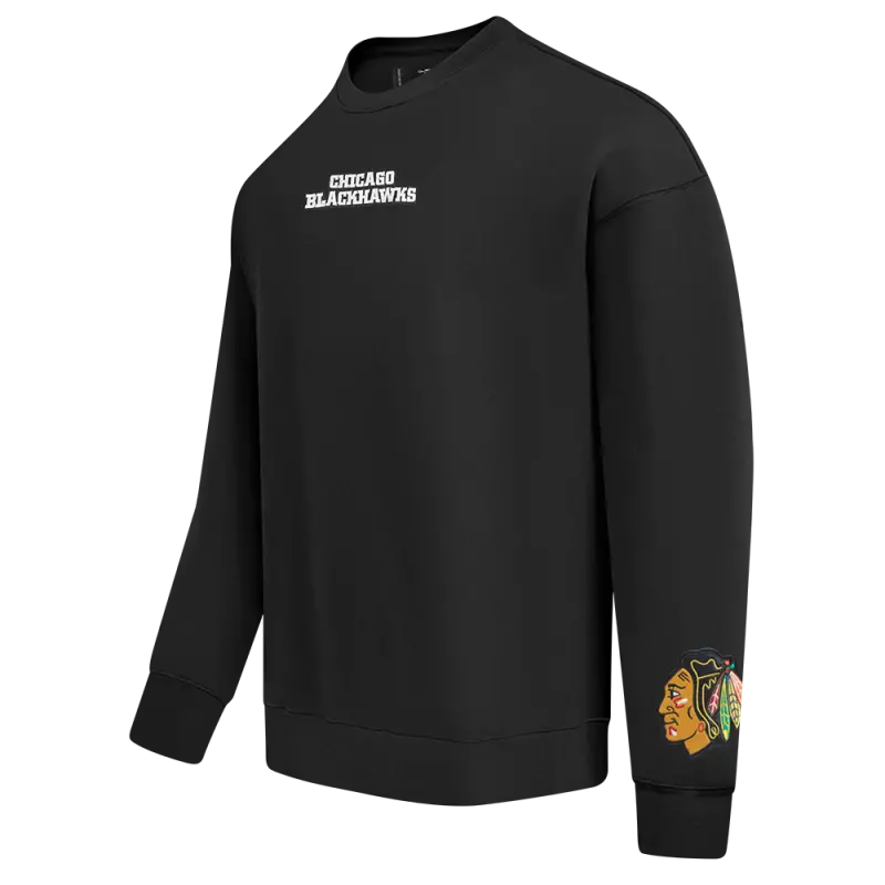 NHL CHICAGO BLACKHAWKS WINGSPAN MEN’S DROP SHOULDER FLEECE CREWNECK (BLACK)