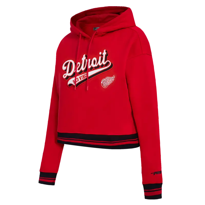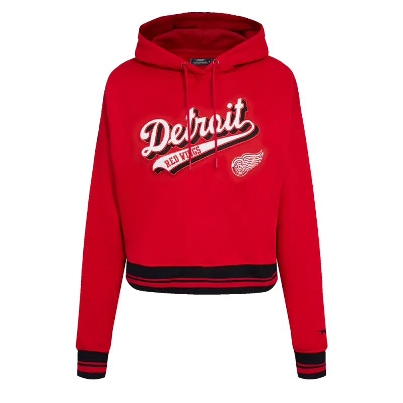 Home / Shop / SWEATSHIRTS / NHL DETROIT RED WINGS SCRIPT TAIL WOMEN’S RIB FLEECE CROPPED PULLOVER HOODIE (RED\/BLACK)