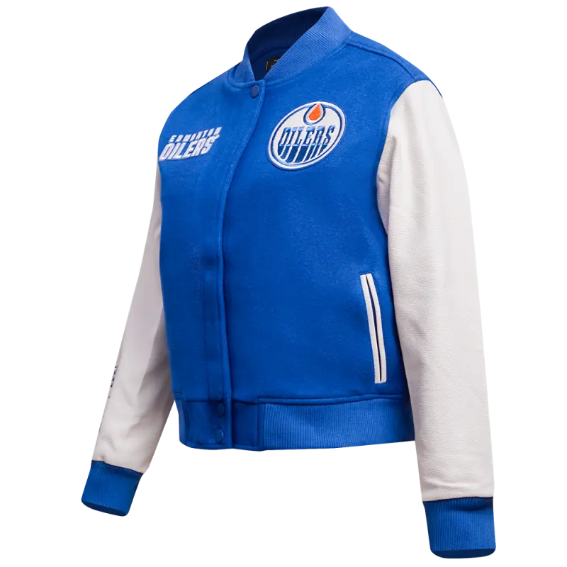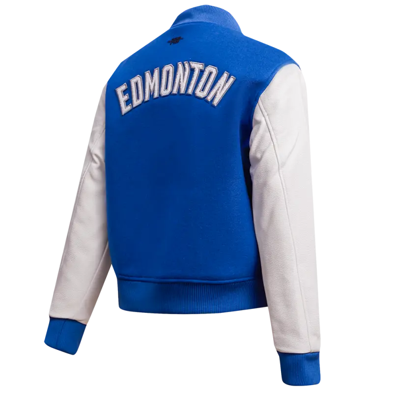 NHL EDMONTON OILERS CLASSIC WOMEN’S WOOL VARSITY JACKET (DODGER BLUE\/WHITE)