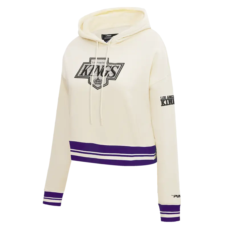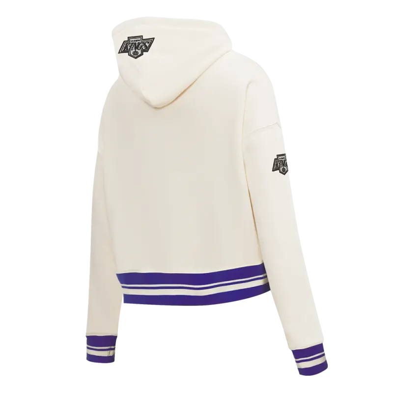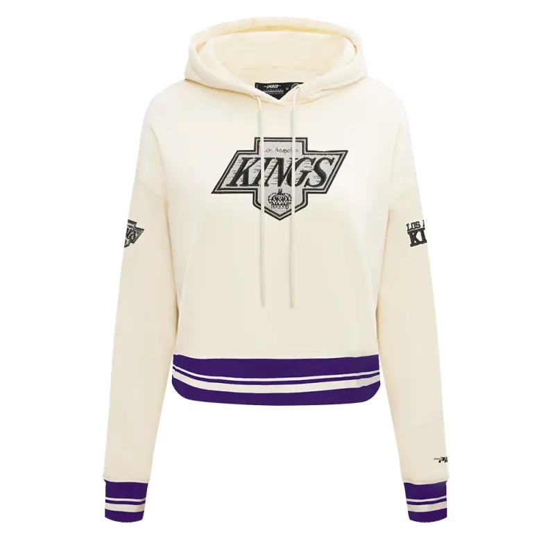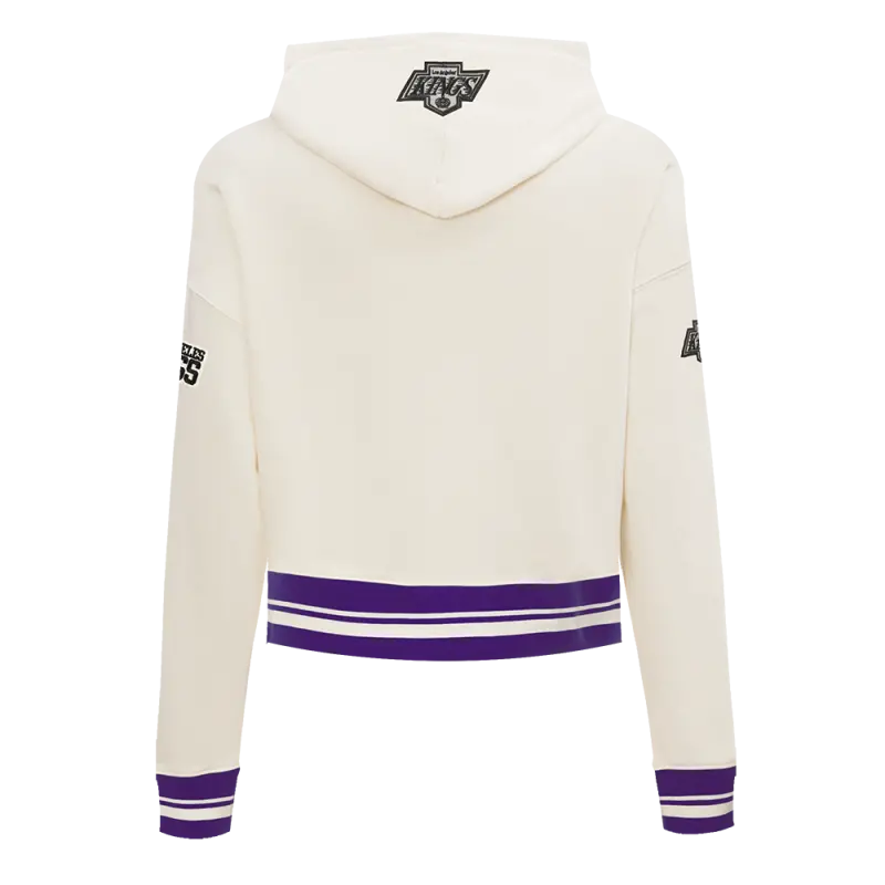 The Pro Standard Premium NHL Los Angeles Kings Retro Classic WoMen’s Rib Cropped PO Hoodie (Eggshell/ Purple)