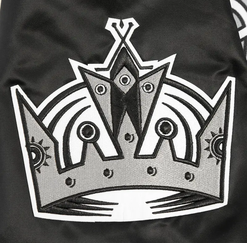 NHL LOS ANGELES KINGS SCRIPT TAIL MEN’S SATIN JACKET (BLACK\/GRAY)